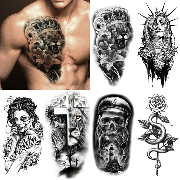 Temporary Tattoos For Men And Women Fake Half Arm And Small Tattoos Sleeves For Arms Shoulders Chest Back Legs Cross Skull Owl Clock Scorpion Rose Realistic Waterproof 10 Large 54 Small Walmart Com
